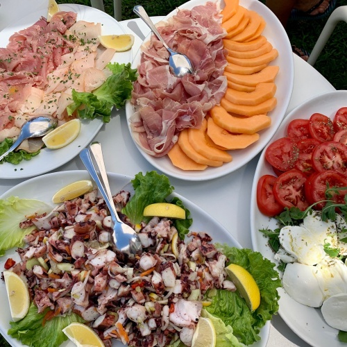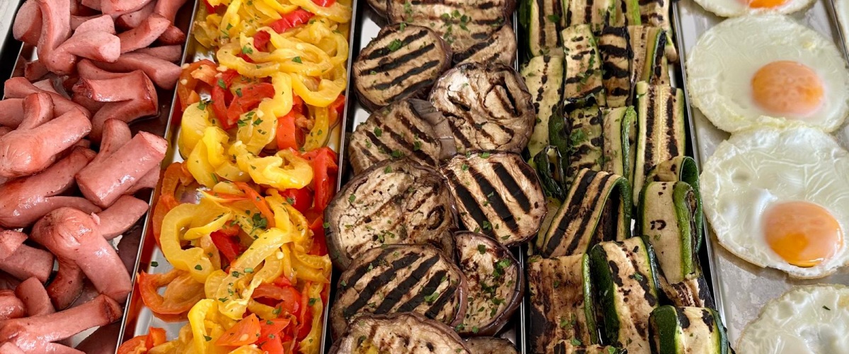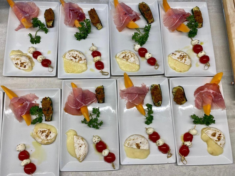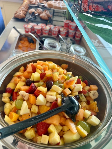 Es gibt ein gut sortiertes Buffet mit rohem und gegartem Saisongemüse und nie fehlen die leckeren Vorspeisen, mit denen Sie Ihren Appetit anregen können! Und zum Abschluss natürlich eine köstliche Auswahl an Süßspeisen und Kuchen...