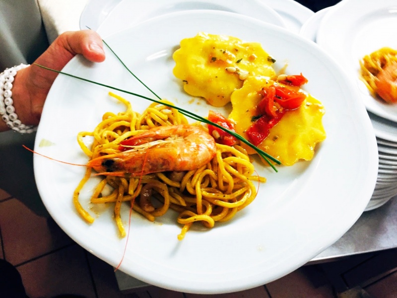 Und hier sind wir wieder in unserem Speisesaal mit Blick aufs Meer, wo Sie die typischen Gerichte der italienischen und vor allem der mediterranen Küche genießen können. Nachdem Sie ihre Mahlzeit bestellt haben, warten Sie in aller Ruhe darauf, dass sie serviert werden, während Sie den Blick über den endlosen Horizont des Meeres streifen und dabei Ihre Gedanken vom Wind mitnehmen lassen. Unsere Gerichte werden von unserem fähigen Küchenteam zubereitet, das sich vor allem durch seine Fischspezialitäten auszeichnet ...